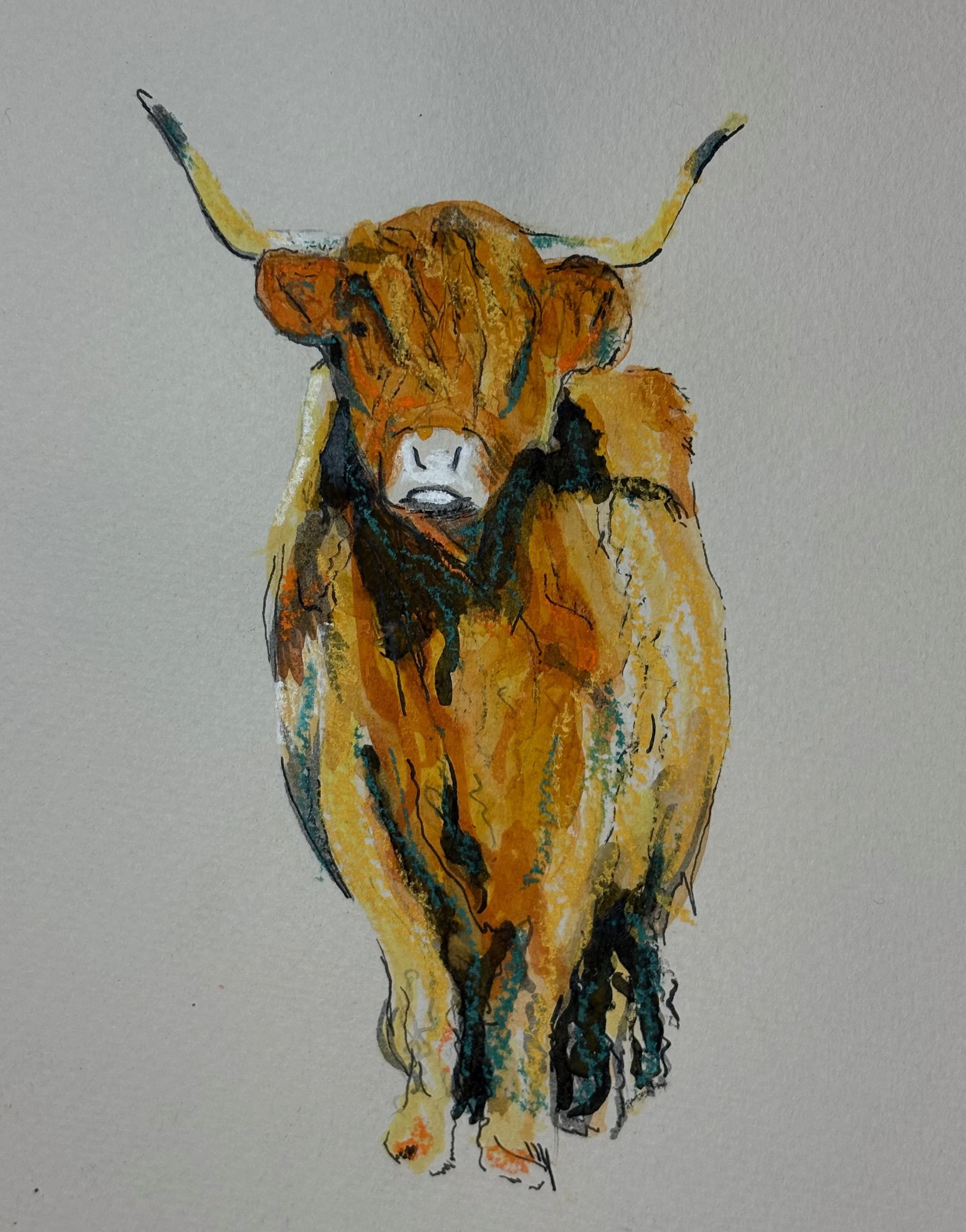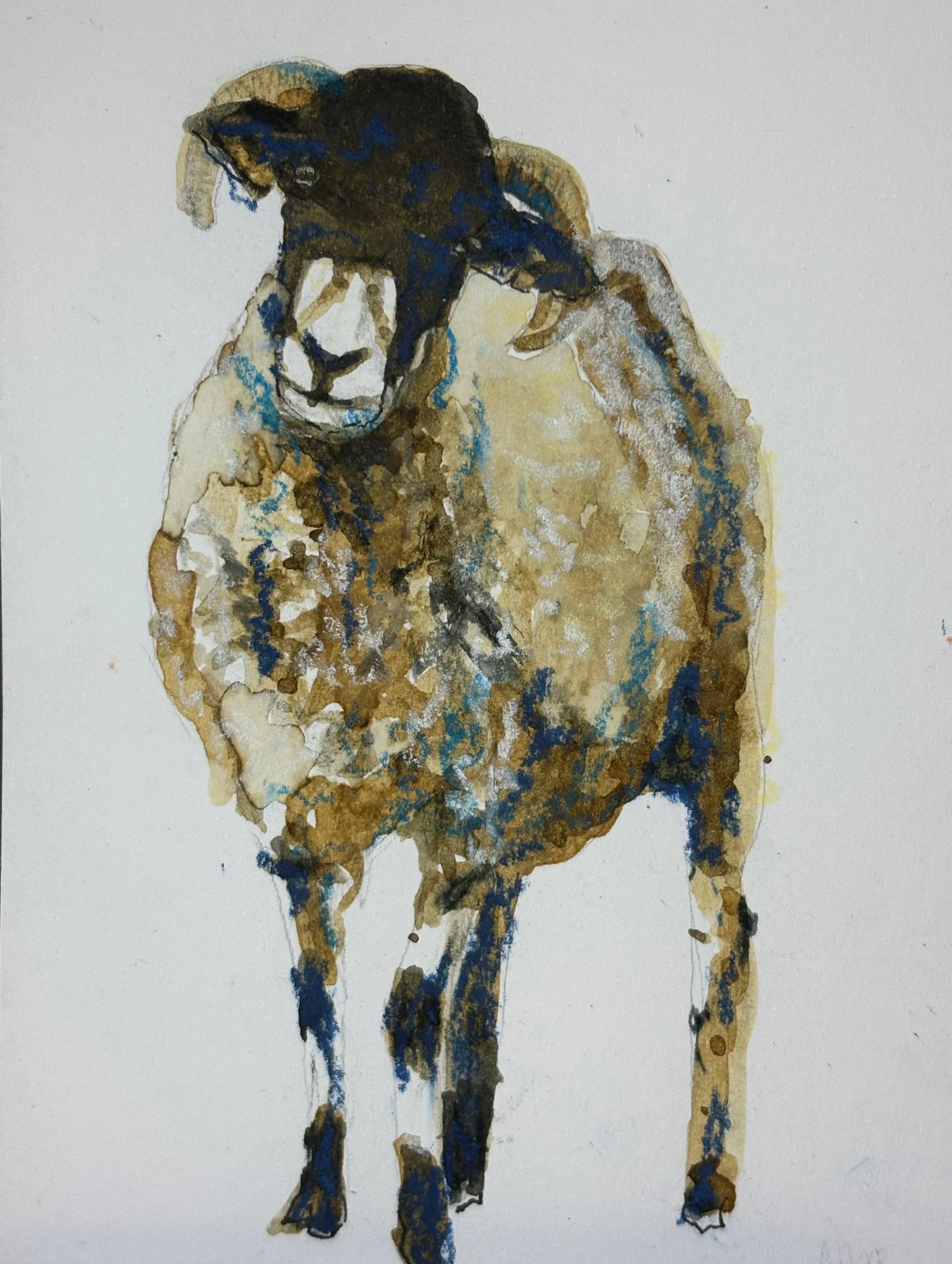 Watercolour, ink and chalk pastels